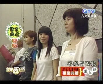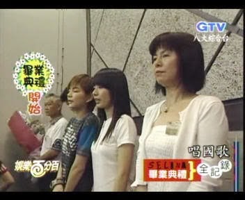 可憐的左右為難的台灣藝人下圖來自2004年,正是SHE深陷台獨謠言最嚴重的時候selina的畢業典禮,全校要齊唱那個什麼青天白日的「國歌」,全體起立。