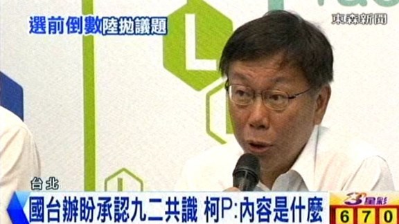 柯文哲說過,他一直不知道九二共識是什麼東東。【
