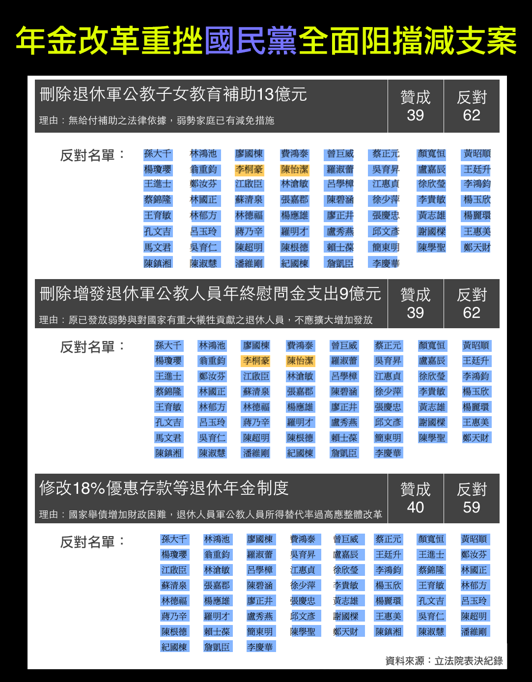延伸閱讀:虛晃七百天,年金改革偷偷停止了 《今周刊》年金改革攏係假 藍委恐嚇不准再推《自由時報》