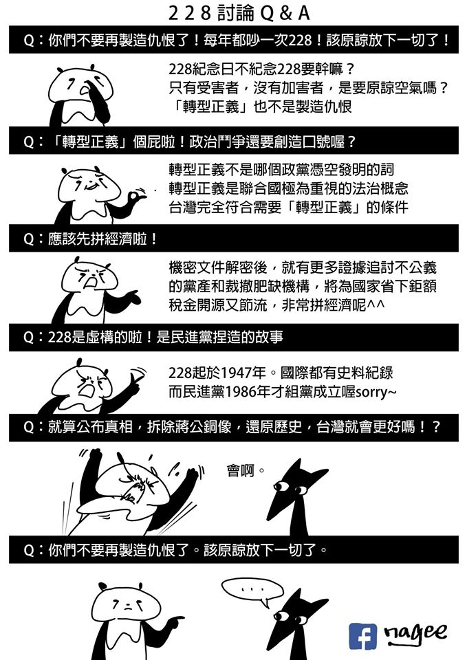【228 討論 Q & A】 Q1:不要再製造仇恨!每年都要吵一次228煩不煩啊!快放下吧~ A:殖民進行式 中華民國不告訴你的228 (女性配音版) https://www.youtube.com/watch?v=eeUd_YNvh2o
