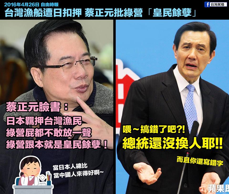止兀,先別管民進黨了,你知道現在的總統還是馬英九嗎? #國民黨都沒做好做滿又要叫救援投手上來喔 #還有你要罰寫十次的根本不是跟本 --- 台灣漁船遭日扣押 蔡正元批綠營「皇民餘孽」 http://goo.gl/xvs4Oa 東聖吉16號船長遭押 船主急匯保證金 http://goo.gl/VaY7yj 聽政府還被抓? 外交部:103年曾函請農委會警覺 http://goo.gl/DCHSup