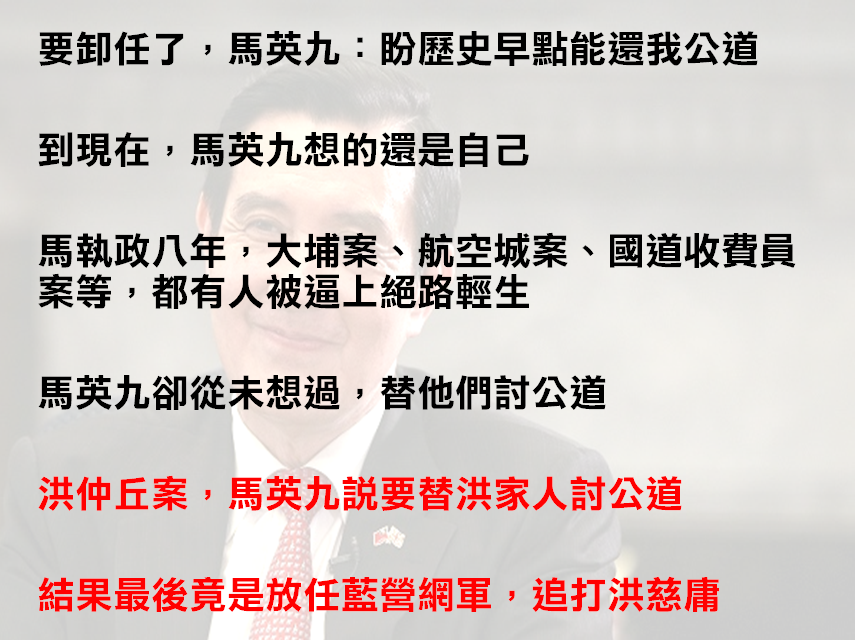 馬英九,像你這種永遠只有自己,沒有人民的領導者,還肖想歷史會還你什麼公道? 被馬政權逼死的台灣人 https://www.facebook.com/649863255100311/videos/734501696636466/ 原來針對洪慈庸的攻擊,是藍營發動的? http://www.wetalk.tw/thread-48513-1-1.html