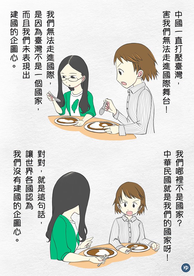 比起對岸那個中國在國際上的打壓,臺灣島上的中國才是造成我們走不出去的主因。 不需要建國是因為我們已經有國家了?只要臺灣人還無法跳脫這層思考,那緊抓住中華民國體制的「維持現狀」就只會是深陷泥淖而已。
