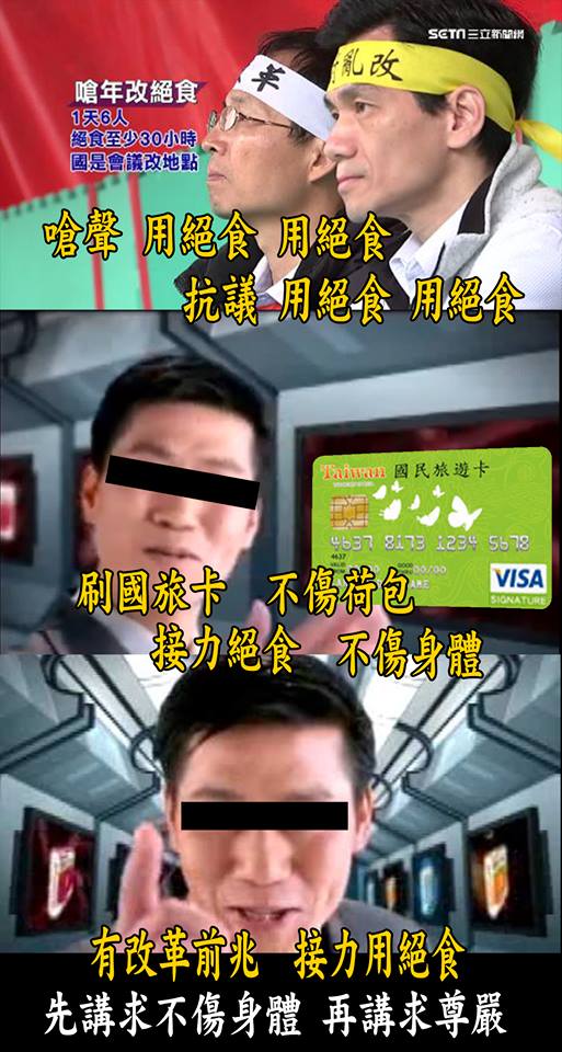 【先講求不傷身體 再講求尊嚴】 不愧是監金盟,連討尊嚴的方式都很安全。 刷國旅卡去抗議,不傷荷包; 接力絕食+設期限,不傷身體! #小編今天晚餐後也來接力絕食到明天早上 「刷國旅卡來抗議」監金盟接力絕食6天5夜討尊嚴 http://newtalk.tw/news/view/2017-01-16/81055