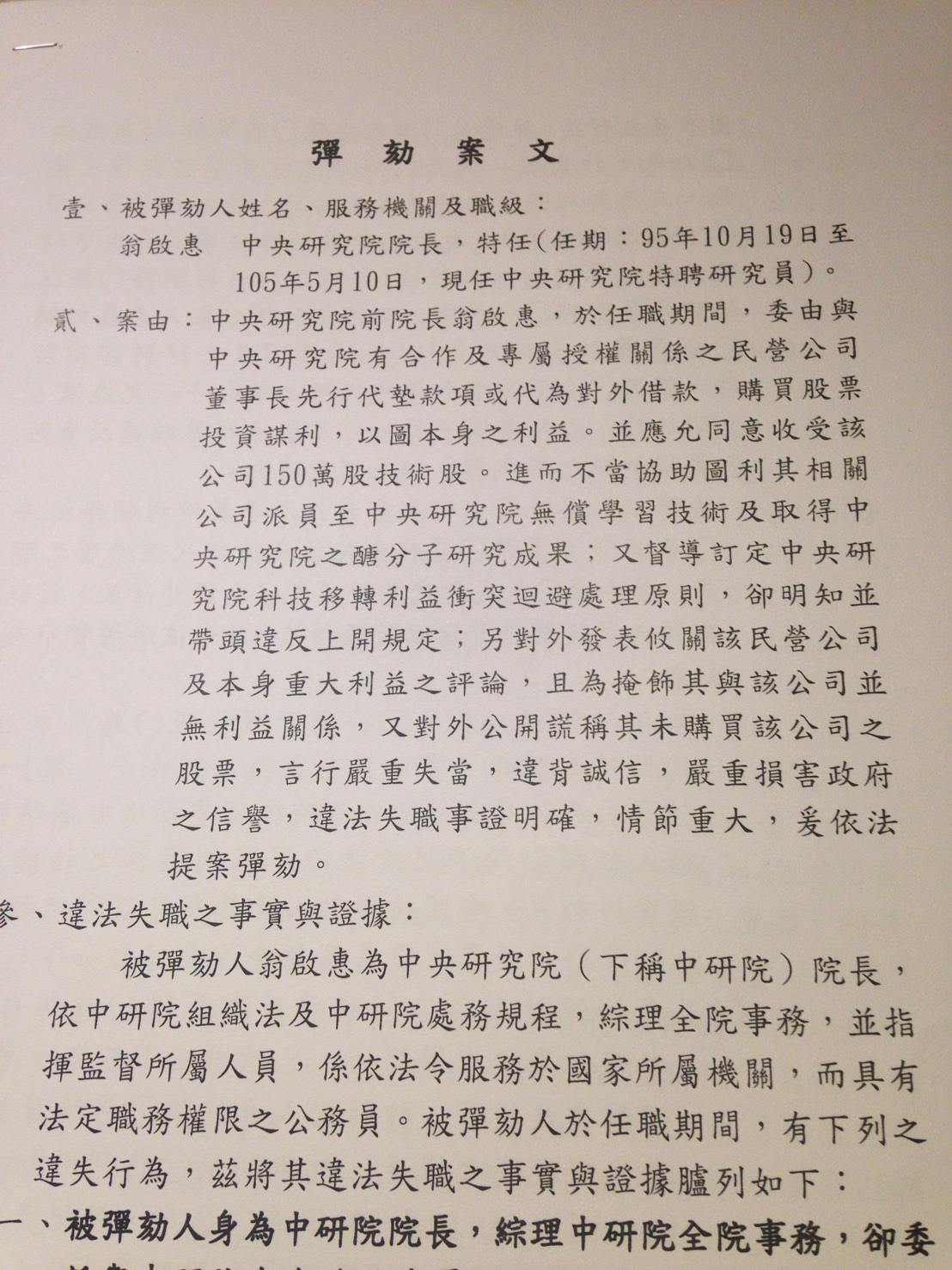 主人夫婦、梁兄、我,四個人坐在客廳,不太知道該講些什麽。這是週日下午,也是士林地檢署公開宣布對中央研究院翁院長放棄上訴的前一天。之前有消息傳來,士林地檢在週六曾全天開會討論此事,但究竟做何決定沒人知道。所以我們只能胡思亂想,一下子覺得依照慣例,一審無罪、檢方有理無理必定上訴,一下子又覺得既然需要開會討論,可能是內部有反對聲浪,不必太悲觀。翁院長也強調,依照中研院行之有年的技術移轉程序規定,是由「智財移轉處」負責與廠商談判授權條件後,交「秘書處」呈副院長審核簽署,院長在技轉流程中毫無職權,但檢方卻以「公務員違背職務貪污罪」起訴他,實在莫名其妙,總算一審法官明察、打臉檢方,應該不會一錯再錯。但我們不禁聯想到陳水扁前總統與郭瑤琪前部長,因為這兩個案子也都是違反「法定職權說」、被依「實質影響力說」泡製出來的司法冤案,翁院長會不會成為台灣司法史上的第三例?