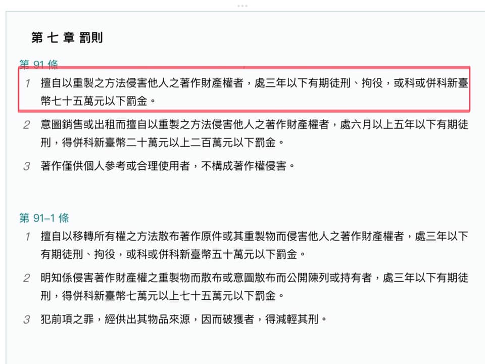 根據著作權法,高虹安擅自以重製之方法侵害經濟部的著作財產權,應處三年以下有期徒刑、拘役,或併科新臺幣七十五萬元以下罰金(附圖五)。
